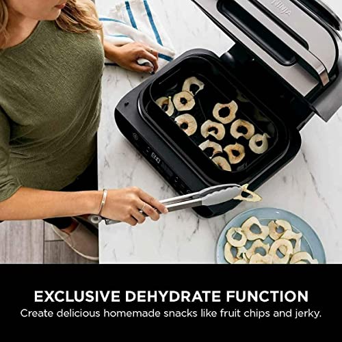 Ninja FG551 Foodi Smart XL 6-in-1 Indoor Grill with 4-Quart Air Fryer Roast Bake Dehydrate Broil and Leave-in Thermometer, with Extra Large Capacity, and a stainless steel Finish (Renewed)
